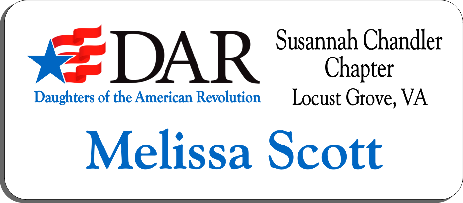 Susannah Chandler Chapter NSDAR Name Badge - White w/ Color